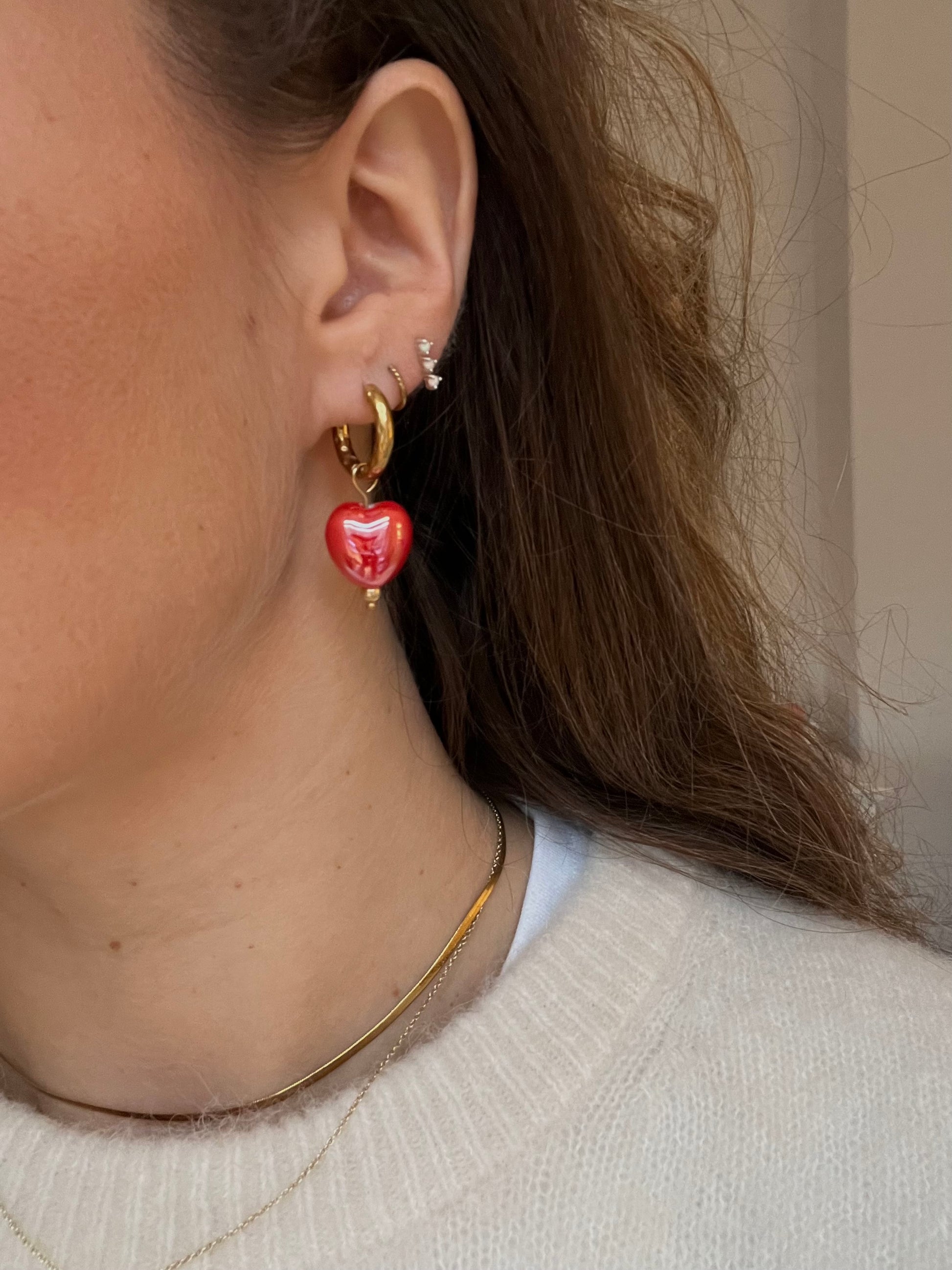 Material: rot glasierte Keramikherzchen kombiniert mit vergoldeten Edelstahl-Kreolen